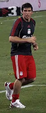Insúa began his football career with youth team Pinocho in Villa Urquiza, Argentina, later moving to, Buenos Aires-based team, Boca Juniors.[4] The left back did not break into the first-team at La Bombonera when he caught the attention of scouts Frank McParland and Paddy Murphy from Liverpool.[5] After some solid performances for the Argentinian U17s, many clubs were desperate to sign him, a player who rarely had appearances for his then club, and Boca were also very keen to get a profit from this young prodigy which led to negotiations between Liverpool and Boca. The defender agreed to an 18-month loan deal with the Merseyside club on 28 November 2006, beginning his loan period in January.[6]