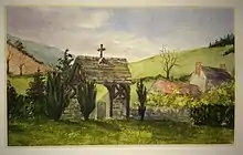 - Deserted Village, signed 'E.M.B.',watercolour, dated May 1883, with handwritten poem on back 4.5 × 7.5 in