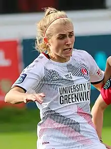 Emma Mary Follis (born 6 January 1992) is an English footballer who last played as a midfielder for Charlton Athletic in the FA Women's Championship. She has previously had spells at Birmingham City and Reading F.C., as well as loan spells in the US with Seattle Reign and Seattle Sounders Women.[2][3][4] Follis has represented England at Under 19 and Under 23 level.[5]