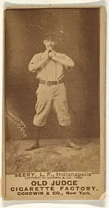Seery was born in Princeville, Illinois, in 1861. He played semi-pro baseball for a team in Waltham, Massachusetts.[2] He started his professional baseball career in 1884 with the Union Association's Baltimore Monumentals. That season, he batted .313 and finished in the top five of several UA statistical categories, including batting average, on-base percentage (.342), hits (146), runs scored (115), and total bases (192). He also led the league's outfielders in putouts (157) and assists (26).[1]