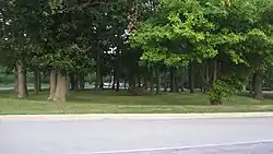 A ceremonial enclosure, the Chrysler Enclosure in the United States. See the shallow ditch on the edges of the grassy area.