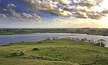 Banjo enclosures are a prominent enclosure type found commonly in the British Middle Iron Age.[36] They are characterised by their small, sub-circular outline, and single entrance, and usually connect to a wider field or paddock.[37][36] The rounded enclosure is usually bound by a lake or something of the sorts, often resembling a banjo.[38] They are not strongly understood or dated; however, it is evident they were originated during the Iron Age.[36][39] The use of these enclosures is speculated to be for stock control and containment, rather than being for defensive and military use.[36][37] It is also thought that the enclosures may have served as high-status occupation sites.[36] The majority of Banjo enclosures are discovered through aerial photography and ground-penetrating radar imaging.[39] Due to their earthwork, they are not expected to remain stable over time.[36]