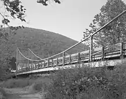 English Center Suspension Bridge is a historic suspension bridge spanning Little Pine Creek in Pine Township, Lycoming County, Pennsylvania. It was built in 1891 and has a single span measuring 300 feet (91 m) long and 15 feet (4.6 m) wide.[2]