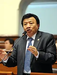 Enrique Wong Pujada (born 26 June 1941, in Lima), is a Peruvian politician of Chinese descent. He was elected as a Congressman of the Republic of Peru in the 2011 elections for the 2011–2016 term, representing Callao. He was elected under the Alliance for the Great Change ticket and later left and joined National Solidarity.[1][2] He was previously a Deputy representing Callao from 1985 to 1990. He was previously a District Councilor representing San Martín de Porres from 1999 to 2002, elected under the Fujimorist Vamos Vecino of Alberto Fujimori. In the 2018 regional elections, he ran for Regional Governor of Callao under the newly Podemos Perú party, but he was not elected, attaining only 3.6% of the vote.
