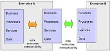 - Interoperability concerns define the content (or aspect) of interoperation that may take place at various levels of the enterprise. In the domain of Enterprise Interoperability, the following four interoperability concerns are identified: data, service, process, and business.[6]