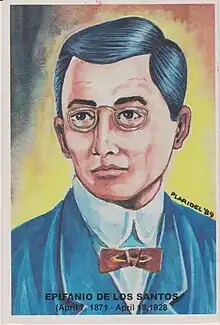 Epifanio de los Santos y Cristóbal, also known as Don Pañong or Don Panyong (April 7, 1871 – April 18, 1928), was a notable Filipino historian, journalist, and civil servant.[10][11][12] He was regarded as one of the best Filipino writers and a literary genius.[13] He also entered politics, serving as a member of the Malolos Congress from 1898 to 1899 from Nueva Ecija and later as governor of Nueva Ecija from 1902 to 1906. As a lawyer, he was named as the district attorney of San Isidro, Nueva Ecija in 1900 and later as fiscal of the provinces of Bulacan and Bataan. He was named as an assistant technical director of the Philippine Census in 1918. He was appointed Director of the Philippine Library and Museum by Governor General Leonard Wood in 1925, serving until his death in 1928.[1]
