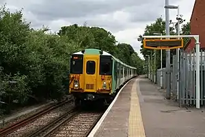 The West Croydon to Sutton line was electrified on the LBSCR overhead system from 1 April 1925; the Epsom Downs branch was not included in the project, but the overhead system was installed in the Down Branch platform at Sutton as far as one train length beyond the country-end crossover, for terminating trains.[14][15]
