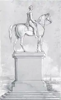A total of nine thousand pounds (£8000, according to some sources[4]) were collected through public subscription and the British sculptor Francis Chantrey was commissioned to make the statue.[5] Chantrey completed the statue in 1834[5] - one of the three equestrian statues sculpted by him.[4] According to a popular belief, the Duke of Wellington, on seeing the completed statue, had exclaimed