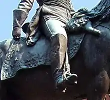 Detail of the statue, showing stirrup and no saddle