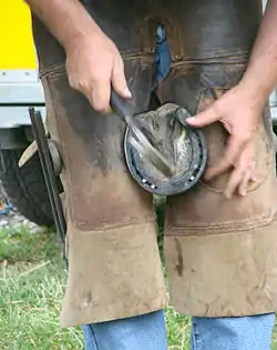 Equine podiatry essentially characterizes the factors that contribute to a reduction in hoof health and performance such as poor conformation, improper hoof trimming and/or shoeing, intense exercise, and insufficient hoof tissue maturation.[4][5][6] Podiatrists also study the ways in which hoof function can be managed and improved in the equine athlete, and work to prevent the incidence of foot problems through proper hoof maintenance or the use of protective shoeing.[7]