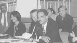 Holder stepped down from the bench in 1993 to accept an appointment as United States Attorney for the District of Columbia from President Bill Clinton. He was the first Black American U.S. Attorney in that office.[8] At the beginning of his tenure, he oversaw the conclusion of the corruption case against Dan Rostenkowski, part of the Congressional Post Office scandal.[14] He was a U.S. Attorney until his elevation to Deputy Attorney General in 1997. Holder also served on The George Washington University's Board of Trustees in 1996 and 1997.