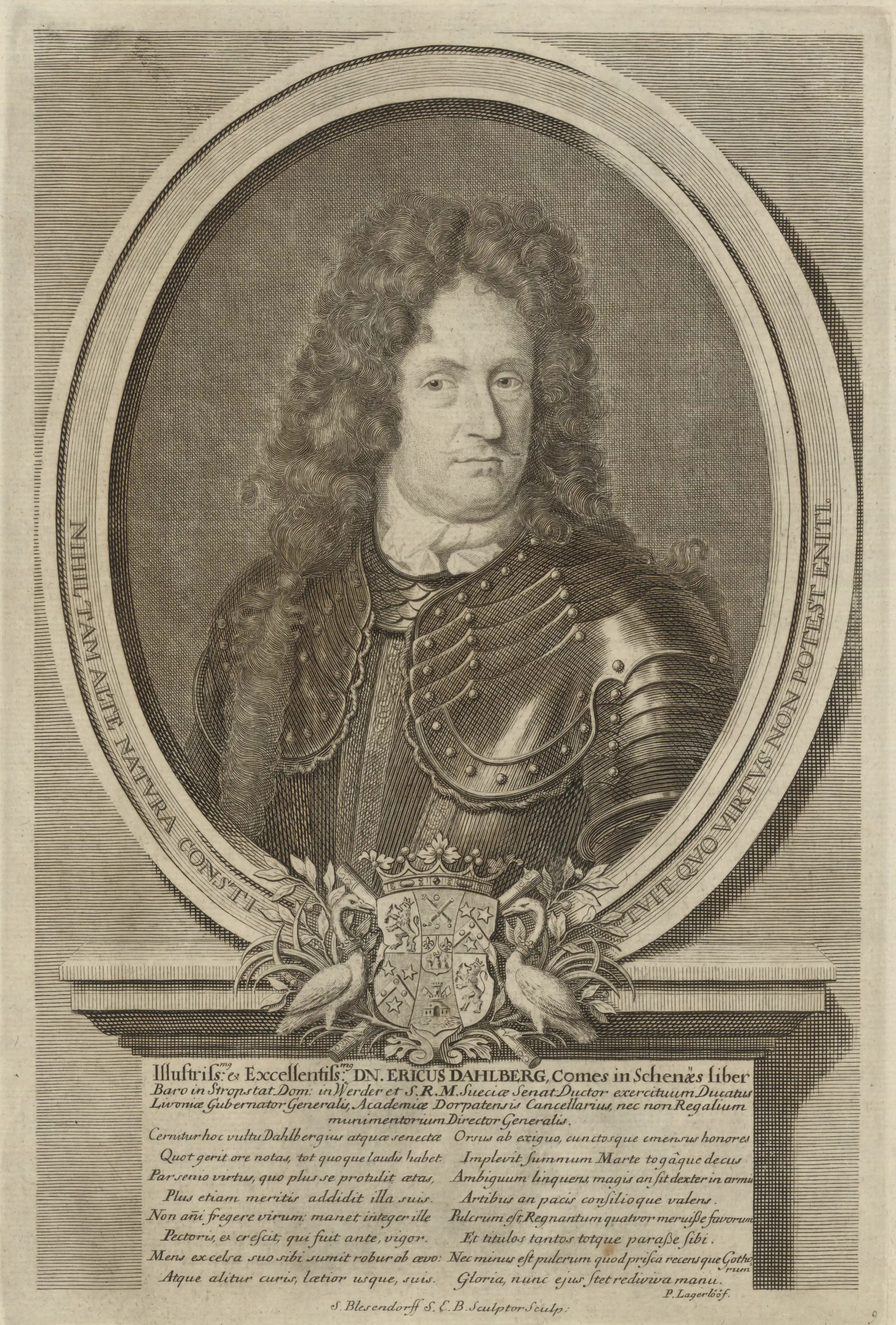 Count Erik Jönsson Dahlbergh (10 October 1625 – 16 January 1703) was a Swedish military engineer, Governor-general and Field marshal. He rose to the level of nobility through his military competence. According to Cathal Nolan, Count Dahlberg was a highly innovative military engineer in the 17th and 18th century, often referred to as the "Swedish Vauban". He was expert in both building and destroying fortifications. In warfare he won several sieges, including Copenhagen and Kronborg. He famously led a Swedish army across the frozen Great and Little Belts to attack Copenhagen. Dahlberg commanded Swedish engineers in several wars and his historic influence was ensured via his skill at map-making, the fortresses he designed, and his widely read writings on military architecture.[1] Today he is well known through his Suecia Antiqua et Hodierna, a collection of engravings of topographical research. [2] [3] [4] [5]