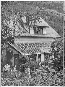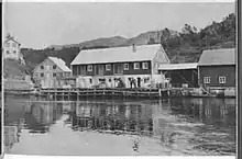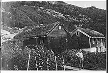 Left, the farmhouse, after being repaired he and his family moved into when arriving Gjølanger. The house to the right is a neighbouring building