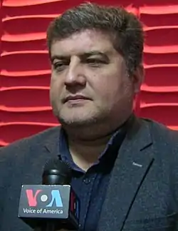 Erkin Gadirli is in opposition to the government of the New Azerbaijan Party,[13] which is ruling in Azerbaijan since 1993.[14] Gadirli stated that he was not a democrat, but a supporter of right-wing authoritarianism. According to him, when the government changes in Azerbaijan, democracy will not be possible in the early years, and the reforms will need to be carried out in a right-wing authoritarian method, implementing "strict measures to regulate the political arena", and support "tough economic reforms in the market relations." He was therefore widely criticized within the party. Erkin Gadirli also spoke of the assassination of the Armenian political figures who committed the Khojaly massacre in 1992, where at least 200[15] and possibly as high as 613[16] ethnic Azerbaijani civilians were massacred by Armenian Armed Forces and the 366th CIS regiment,[17][18] as an act of revenge, for which he was verbally warned by the leadership of the REAL Party.[6] He also called Armenia an "organisation created by Russia," noting that Russia had "expelled the Azerbaijanis from their historical lands, and forcibly changed their names and language."[19]