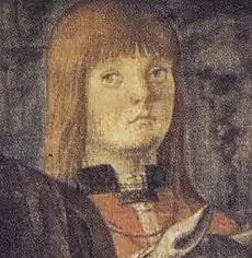 He is portrayed, as a child, in Lorenzo Costa the Elder's Bentivoglio Altarpiece in San Giacomo Maggiore.