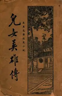 Ernü Yingxiong Zhuan (simplified Chinese: 儿女英雄传; traditional Chinese: 兒女英雄傳; lit. 'The Story of Heroic Boys and Heroic Girls'), sometimes translated into English as A Tale of Lovers and Heroes and A Tale of Heroic Lovers, is a Chinese novel in 40 chapters first printed in 1878 during the late Qing dynasty. It is written by Yanbei Xianren (燕北闲人), the pen name of Wen Kang (文康 fl. 1821-1850), a Manchu of an Eight Banner family. The novel is composed of vignettes that concern He Yufeng (何玉凤), also called "Thirteenth Sister" (十三妹). He Yufeng seeks revenge for her father, who died in prison because of persecution by a high official. She rescues a virtuous young woman, Ms. Zhang, and a heroic young scholar, An Ji (安骥) from cannibals. When An Ji becomes a high official, he marries both Hu and Zhang and when a new emperor ascends the throne, her father finally receives justice. Her actions are characterized by the traditional Confucian virtues, loyalty, piety, righteousness, love and heroism but the resolution of the novel comes through luck, or fate.[1]
