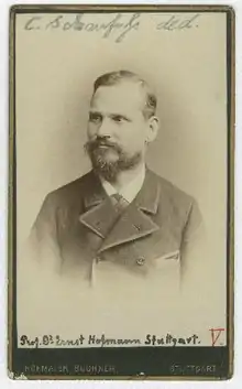 Also a zoologist, Ernst Hofmann trained as an apothecary and later became the curator of the Naturalienkabinett in Stuttgart. His collections of Psychidae, Sesiidae, Tortricidae, Tineidae and Pterophoridae are held by Natural History Museum, London. Others (macrolepidoptera) are held by the National Museum of Natural History in Washington. He wrote parts of the multi-volume work Die Schmetterlinge Europas (The Lepidoptera of Europe), published in 1908. This was for decades a standard in the study of Lepidoptera.