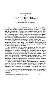 - Ernst Winterstein: Ernst Schulze. In: Verhandlungen der Schweizerischen Naturforschenden Gesellschaft. Vol. 95, 1912.