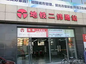 Erweilu Station (Chinese: 二纬路站), literally Erwei Road Station in English, is a station of Line 1 of the Tianjin Metro. It started operations on 12 June 2006.[1]