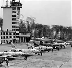 In 1949, EC 1/2 Cigognes moved to Dijon-Longvic, at the same time reequipping with De Havilland Vampire jets, followed by the Dassault MD 450 Ouragan, then Dassault Mystère IVAs. It was in this aircraft that the squadron was engaged during the Suez Crisis in 1956. Notably, it became the first unit of the French Air Force to deploy an indigenous Mach-2 fighter, the new Mirage IIIC, on 7 July 1961.[6] In 1968 these were replaced by Mirage IIIEs.