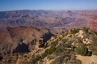 Escalante Butte is a 6,536-foot (1,992 m) prominence adjacent the far eastern South Rim of the Grand Canyon, of Northern Arizona. Adjacent east is a lower elevation butte, Cardenas Butte. Both buttes, (and the South Rim), are part of the western drainage of north-trending Tanner Canyon into the Colorado River.