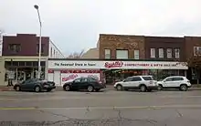 The 1400 block of Ludington is also primarily composed of small brick commercial blocks on the north side. The south side of the street contains the 1920s Northern Motors dealership, which has been a Ford automobile dealership for over eight decades.[2]
