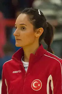 Esin Sağdıç (born 11 January 1988 in Izmir[1]) is a Turkish female handballer playing in right wing position. The 168 cm (5 ft 6 in) tall sportswoman at 55 kg (121 lb) is a member of the Turkish national team.