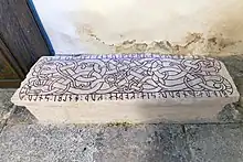 Eskilstunakista ("Eskiltuna coffin") is a Swedish term for early Christian grave monuments found in Sweden, influenced by the Anglo-Saxon tradition where venerated persons were buried in a specially designed stone coffin. Eskilstuna coffins were on the other hand never intended for the remains of the deceased, but was constructed on top of the burial site.[1] The coffins consist of five ornamental stone slabs; two side slabs, two gable slabs, and a lid slab. The name originates from the first complete coffin found in Eskilstuna; later other fragments and slabs of the same kind have been identifiers as Eskilstuna coffins.