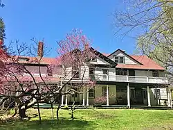 Esperanza is located in a rural but geographically central part of New Hartford, at the northwest corner of Town Hill Road and Beeney Road. The 18-acre (7.3 ha) property is wooded in its eastern part, where its buildings are located, and is a tree-fringed cleared field to the west. The estate includes a main house and two small guest houses, a carriage house, and a summer kitchen. The main house is a somewhat rambling multigabled 2+12-story wood-frame structure, with porches to the east (where the main entrance is) and the west (where the fields provide a view to the hills further west). It is now predominantly Colonial Revival in style, with aspects of the Shingle style evident in some of its details. The two guest houses are vernacular single-story buildings with Colonial Revival porches.[2]