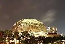 The Esplanade is a waterfront location just north of the mouth of the Singapore River in downtown Singapore. It is primarily occupied by the Esplanade Park, and was the venue for one of Singapore's largest congregation of satay outlets until their relocation to Clarke Quay as a result of the construction of a major performance arts venue, the Esplanade - Theatres on the Bay, which took its name from this location.