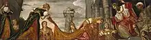 Esther Before Ahasuerus is a large painting of 1546–47 by the Venetian painter Tintoretto showing a scene from the Greek addition to the Book of Esther, in which Queen Esther faints during a bold intervention with her husband King Ahasuerus of Persia. In oil on canvas, it measures 207.7 by 275.5 centimetres (81.8 in × 108.5 in). Since the 1620s it has been in the Royal Collection of the United Kingdom, and in 2019 it hung in the King's Gallery in Kensington Palace, London.[1]