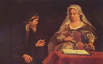 Esther and Mordecai is a 1685 oil on panel painting by Arent de Gelder, a pupil of Rembrandt and recognized Dutch painter of the late 17th and early 18th centuries.[1][2] He was known for his treatment of biblical subjects. This painting is now in the Museum of Fine Arts, in Budapest.[3]