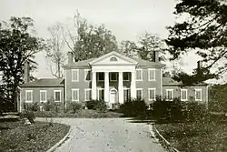 Estouteville is a historic home located near Powell Corner, Albemarle County, Virginia. The main house was begun in 1827, and consists of a two-story, seven-bay central block, 68 feet by 43 feet, with two 35 feet by 26 feet, three-bay, single-story wings. It is constructed of brick and is in the Roman Revival style. A Tuscan cornice embellishes the low hipped roofs of all three sections, each of which is surmounted by tall interior end chimneys. The interior plan is dominated by the large Great Hall, a 23-by-35-foot richly decorated room. Also on the property are a contributing kitchen / wash house; a square frame dairy (now a chicken house); a square, brick smokehouse, probably built in the mid-19th century, also covered with a pyramidal roof; and a frame slave quarters.[3]