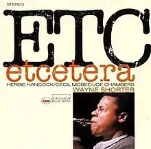 Etcetera is the eighth album by saxophonist Wayne Shorter, recorded on June 14, 1965, but not released on Blue Note until 1980.[1] The album features four originals by Shorter and an arrangement of Gil Evans' "Barracudas" performed by a quartet with pianist Herbie Hancock, bassist Cecil McBee and drummer Joe Chambers.