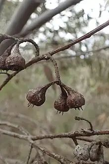 - ↑ Nicolle, Dean; French, Malcolm E. (2012). "A revision of Eucalyptus ser. Falcatae (Myrtaceae) from south-western Australia, including the description of new taxa and comments on the probable hybrid origin of E. balanites, E. balanopelex and E. phylacis" (PDF). Nuytsia. 22 (6): 447–448. Retrieved 11 March 2019.