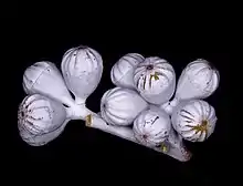 - Eucalyptus canescens subsp. canescens,[9] the Ooldea Range mallee, has its twigs, buds and fruit covered with a powdery white bloom, greyish leaves and more strongly ribbed fruit;[4][6]