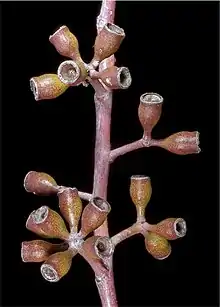 - 1 2 3 Brooker, M. Ian H. (1986). "New species and subspecies of the informal "Eucalyptus series Calycogonae" Pryor & Johnson (Eucalyptus series Aridae Blakely - Myrtaceae)". Nuytsia. 5 (3): 359–362. Retrieved 21 April 2019.