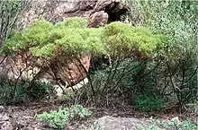 Subspecies continentalis is listed as "Threatened Flora (Declared Rare Flora — Extant)" by the Department of Environment and Conservation (Western Australia).[11] Subspecies insularis is listed as is classified as "Priority Four",[12] meaning that is rare or near threatened.[13] The main threat to the species is increasing fragmentation and loss of remnant populations.[10]