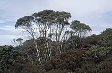 Kybean mallee ash grows in exposed positions at high altitude where it is often locally dominant in subalpine mallee scrubs. It occurs south from near Kybean in the far south-west of New South Wales and in the Victorian High Country.[3][4][6]
