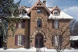 The Eugene A. Brewster House is a historic house located at 264 Grand Street in Newburgh, New York. Built in 1865, the year Newburgh incorporated as a city, it was designed by English immigrant architect Frederick Clarke Withers for attorney Eugene Augustus Brewster.[2] It is the last residence Withers designed in Newburgh, where he began his career as a practicing architect in the mid-1850s.[3]