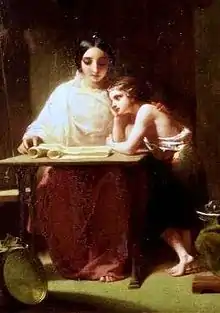 Eunice is identified by name only in 2 Timothy 1:5, where the author writes to Timothy, "I am reminded of your sincere faith, a faith that dwelt first in your grandmother Lois and your mother Eunice and now, I am sure, dwells in you as well" (ESV). Many commentators have also connected Eunice to 2 Timothy 3:15, where Timothy is reminded, "from childhood you have been acquainted with the sacred writings" (ESV). Albert Barnes makes this observation of Eunice: "The mother of Timothy was a pious Hebrewess, and regarded it as one of the duties of her religion to train her son in the careful knowledge of the word of God."[2] Timothy's mother is also mentioned, but not named, in Acts 16:1 where it shows she married outside of the Jewish faith to a Greek man (who was well spoken of in their home town, Lystra).