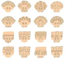 The clay figurines are completely handmade and free standing, in the fact, the name EU SPF's comes from their typical tubular bodies. The shape of the body is concave at the base to allow them to stand, the feet can be rendered through a central protruding piece of clay in the middle of the frontal part. They were usually held with one hand with the other one was engaged in modelling details. This was the so-called “snowman” technique, which allows working figurines in a three-dimensional space. The object is shaped all-around, preferring the under part of the figurine's body as base of support. Unlike figurines made with molds, these figurines could be viewed from all sides, although the front part is the preferred view. This characteristic can be appreciated by observing some headdresses, being well rendered in the front side, while to the back is not given special interest. Among the modelling tools apart from fingers one should mention a pointed wooden stick for the characterization of anatomical features, especially fingers, but also particular ornaments. Other more rarely used tools were floral patterns and combs.[5]