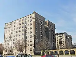 Eutaw–Madison Apartment House Historic District is a national historic district in Baltimore, Maryland, United States. It consists of a group of three multi-story apartment buildings built in the first quarter of the 20th century. They are: The Esplanade, a 9-story apartment building built in 1912; the Emersonian, an 8-story building constructed in 1915 of stuccoed masonry; and Temple Gardens, a 14-story building built in 1926. The district is significant in part because of its association with Baltimore's Jewish community. During the 19th century, the Eutaw–Madison neighborhood became a center for the Jewish community in Baltimore. By the 1920s the neighborhood had been established firmly as a neighborhood of middle and upper-class Jews, many of whom were professionals and merchants.[2]