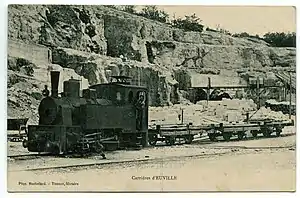 The Euville light railways (French: Réseaux des carrières Civet-Pommier & Cie et Fèvre & Cie) were an approximately 8.8 kilometres (5.5 mi) long light railway with a track gauge 1,000 mm (3 ft 3+3⁄8 in) and a narrow gauge with gauge of 600 mm (1 ft 11+5⁄8 in) near Euville in the département Meuse in the Grand Est region of France (until 2015 Lorraine).[1][2][3][4]
