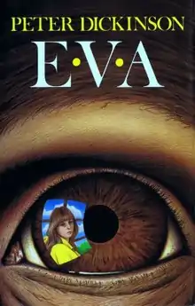 Eva is a science fiction novel for young adults by Peter Dickinson, published by Gollancz in 1988. Set in a dystopian future, it features "the hybrid that results when the brain-patterns and memory of a dying girl are transferred into the brain of a chimpanzee." Dickinson researched chimp behavior for the book and he dedicated it to Jane Goodall.[3]