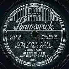 "Every Day's a Holiday" is a song written by Sam Coslow and Barry Trivers. The song was recorded by Glenn Miller and His Orchestra on Brunswick Records in 1938.[1]