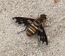 Exoprosopa fascipennis is a species of bee fly in the family Bombyliidae.[1][2][3][4] The larvae are ectoparasites of solitary wasp larvae. [5]