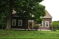 The Ezekiel Woodruff House is located in eastern Southington, on the east side of East Street (Connecticut Route 364), just south of its crossing of Misery Brook. It is a single-story wood-frame structure, with a gabled roof, central chimney, and clapboarded exterior. It is set close to the road, on a brownstone foundation, with a large brownstone slab as its front step. Its main facade is five bays wide, with a center entrance topped by a six-light transom window. Windows are rectangular sash, set in openings with simple surrounds. The interior retains a number of original features, including wide floorboards, wooden paneling, and fireplace surrounds.[2]
