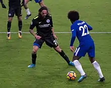 On 31 August 2017, Schelotto completed a transfer to Premier League club Brighton & Hove Albion, signing a three-year contract at the south coast club.[16] Schelotto made his Albion debut on 1 October 2017 coming on as a substitute in the 2–0 away defeat to Arsenal in the league.[17] In his next game for the Sussex club he came on again as a substitute this time away to West Ham where Brighton won 3–0.[18] Schelotto made his home debut for The Seagulls on 20 November coming on as a sub in a 2–2 draw against Stoke City.[19] Schelotto made his first start for Brighton in an away match in the league against Spurs where they lost 2–0 on 13 December.[20]
