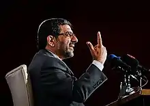 For part of the Iran–Iraq War, Zarghami was in charge of teams tasked with the domestic production of missiles, a necessity due to many countries' refusal to sell weapons to Iran.[2] Zarghami eventually departed from the IRGC as the rank of general; he has cited his interest in politics as his motivation for leaving.[2] In 1995, he became deputy cultural minister overseeing cinematic affairs; he held the post for two years, during which he implemented tough restrictions on content, despite the distaste of many cinema activists. During this time, President Hashemi Rafsanjani distanced himself from Zarghami.[2] Contradicting his harsh tenure, he has claimed to have 'paved the way' for artists in Iran.[2] In 2004, Supreme Leader Ali Khamemei appointed him to head of the state broadcasting service, Islamic Republic of Iran Broadcasting (IRIB), a post that he held for ten years. His predecessor was Ali Larijani. Throughout Mahmoud Ahmadinejad's presidency, Zarghami was accused of covering events in a biased manner. Zarghami developed a close relationship with Ahmadinejad, which he has maintained; Zarghami accompanied the then-president Ahmadinejad on his trip to the United Nations General Assembly in 2010, and the two often took phone calls with one another during the latter's term in office.[2] After the 2009 Presidential Elections protests, many blamed Zarghami and the IRIB's biased coverage for provoking reformists to mobilize.[2] His tenure ended in 2014, after which he became more of an active presence on social media platforms; he held meeting with controversial Iranian politicians from the left and right, portraying himself as an "inclusive politician".[2]